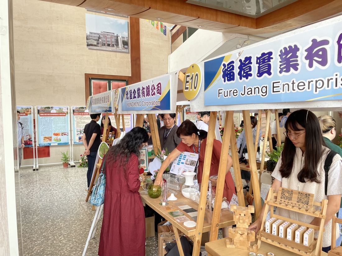 會場同步舉辦的產業市集共有 20 餘家廠商參展,涵蓋生技、食品科技、農業、醫療及教育等多元領域,展示創新成果與合作亮點,吸引眾多師生及貴賓交流參觀。