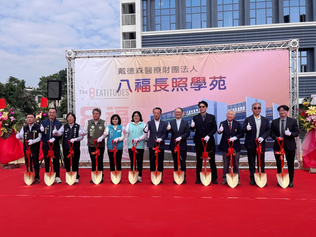戴德森醫療財團法人今(23)日上午於嘉義縣民雄鄉舉行「八福長照學苑動土感恩禮拜」,全台首創以「挪亞方舟」為意象打造的創新型長照園區,預計2028年完工,未來將提供日間照顧、住宿式長照、復能訓練及世代共融空間,成為嘉義高齡社會的重要服務據點。