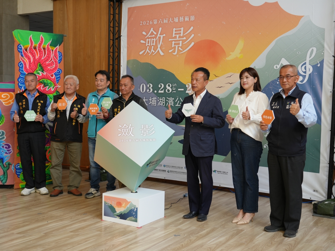 位於台三線群山環抱中的嘉義縣大埔鄉,以絕美的曾文水庫湖光山色與零污染的綠色環境,享有「桃花源勝地」之美譽。一年一度的藝文盛事「大埔藝術節」即將到來,今年第六屆活動以主題「瀲影」為引,象徵在湖濱公園、情人公園等各個角落,都能欣賞到水滿溢而波光閃耀的絕美景色。主辦單位 3 月 17 號於縣府舉辦記者會,宣布活動將於 3 月 28 號至 29 號正式登場。