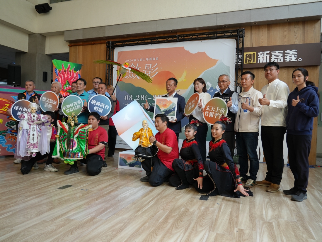 記者會現場也邀請了多組策展團隊進行跨界演出,包含「五洲勝義閣」、「嘉義民族管弦樂團」及「咚咚舞蹈團」。表演以大埔特有的老鷹形象進行創作,透過音樂、戲劇與舞蹈展現出大埔兼容並蓄的文化樣貌。這一系列精采的藝術呈現,不僅展現了大埔守護土地、平安祥和的精神,更用全新的創作邀請全國好友,一同來到這座山城感受自然的律動與生活的想像。
