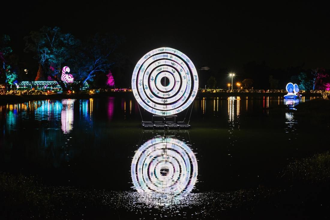 今年記者會特別邀請「復雷閣」舞團進行開幕表演,表演將街舞與愛麗絲夢遊仙境巧妙融合。本次展覽分為八大主題展區,將重現故事中的奇幻場景。現場亮點包括一座30米長的沉浸式光環隧道、高達9米的愛麗絲立體裝置,以及在湖面上以五環結構打造的全新「大月亮」藝術裝置。