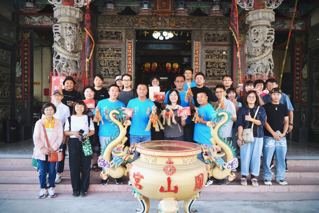而遊程中另一大重點,則是來到鹿草鄉親的信仰中心「鹿草圓山宮」。這裡不僅是地方信仰的凝聚點,更承載了珍貴的無形文化資產。現場由在地青年,為大家深度解說傳承已久的「火馬祭」文化,以及背後為地方祈福消災、送走瘟神的深厚意涵,展現了鹿草獨有的文化底蘊。
