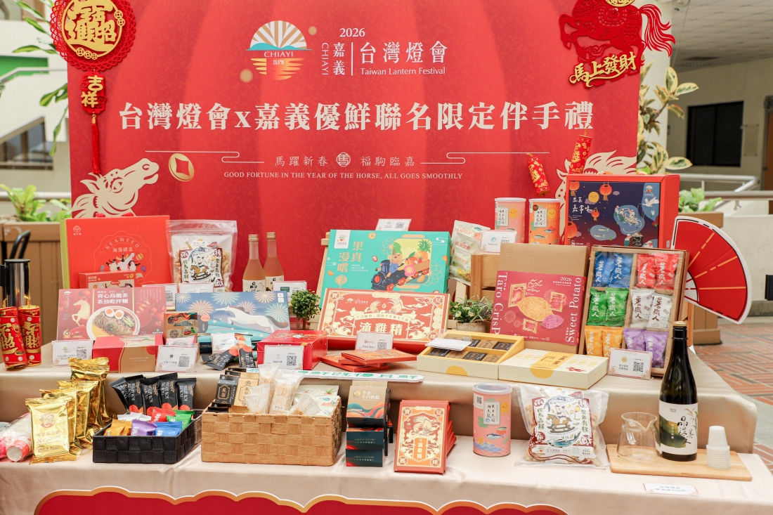 新春佳節即將到來,嘉義縣政府今20日舉辦「嘉義優鮮・馬上好運—嘉義優鮮×台灣燈會聯名及年節伴手禮宣傳記者會」,推出12項「台灣燈會在嘉義」限定聯名伴手禮,涵蓋在地水果製作的果乾禮盒、融入阿里山高山茶的茶油拌麵、以在地食材製成的老菜脯鳳梨酥、辣椒米磚,還有取材自嘉南平原釀製的大吟釀清酒等豐富品項。